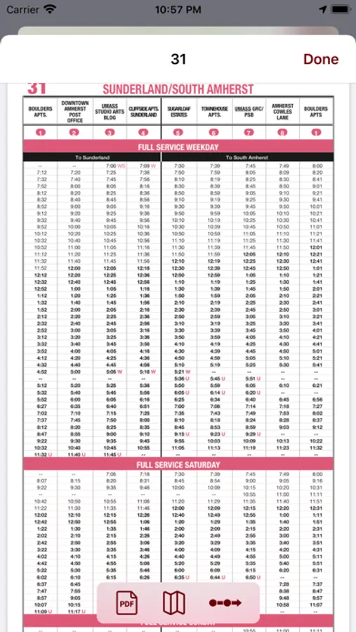 • Complete OFFLINE PVTA schedule, no internet necessary