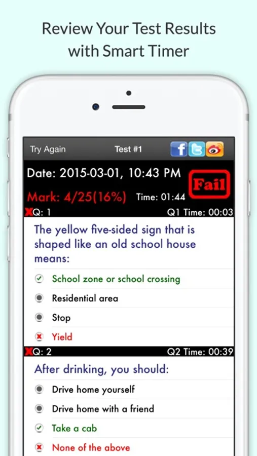 • Find out what questions you've done wrong after taking the test