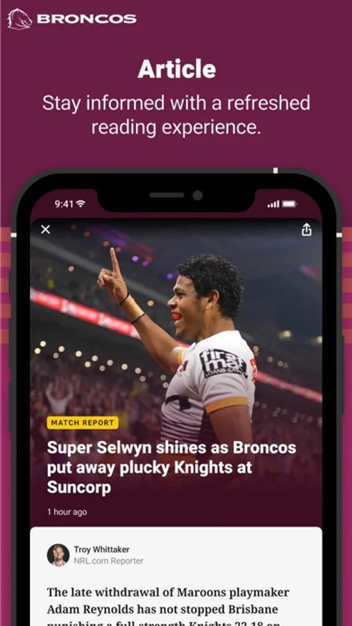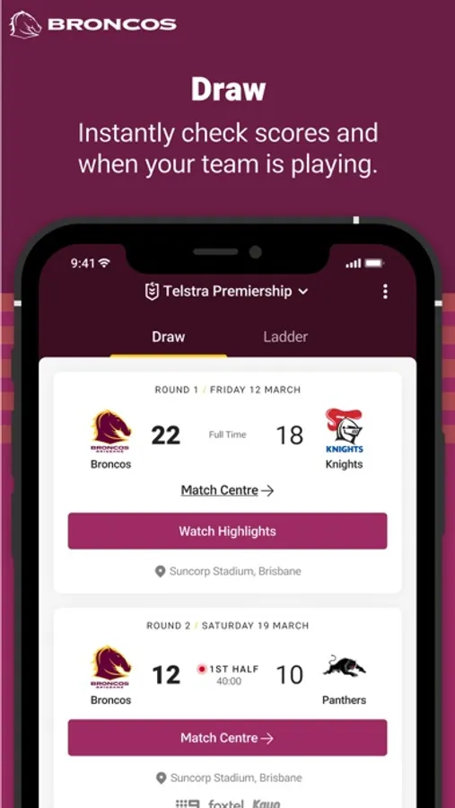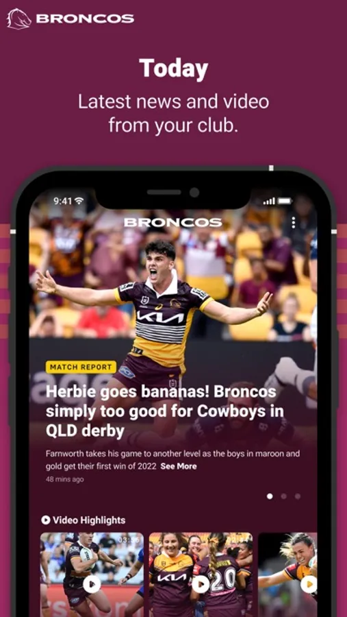Welcome to the brand new Official Brisbane Broncos app. Our completely redesigned experience gives you access to your favourite team and favourite players - plus you'll get breaking Broncos news, live scores, stats, game day information and match highlights. It's everything you need to know about the Broncos, no matter where you are.