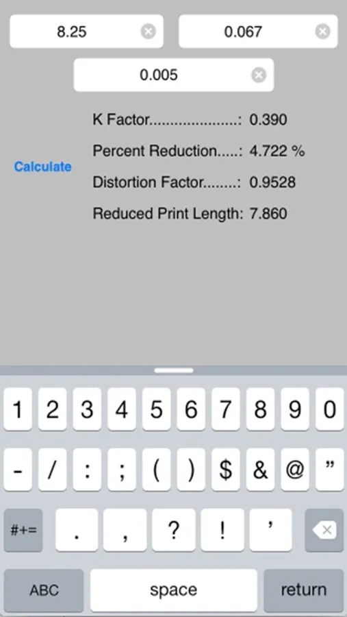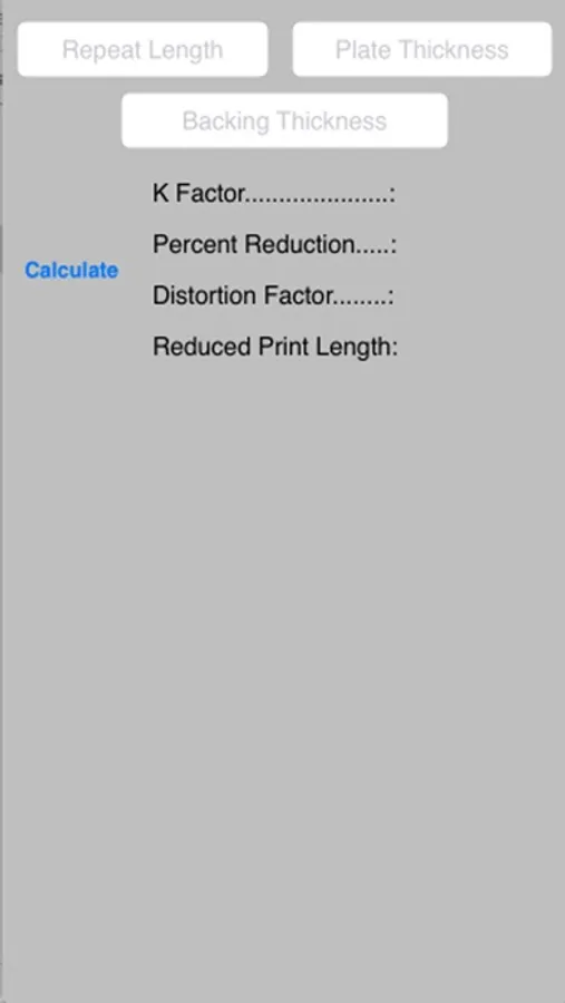 This app calculates the K Factors and percentages of reductions needed when processing flexo plates with different repeat lengths, thicknesses and backing thicknesses.