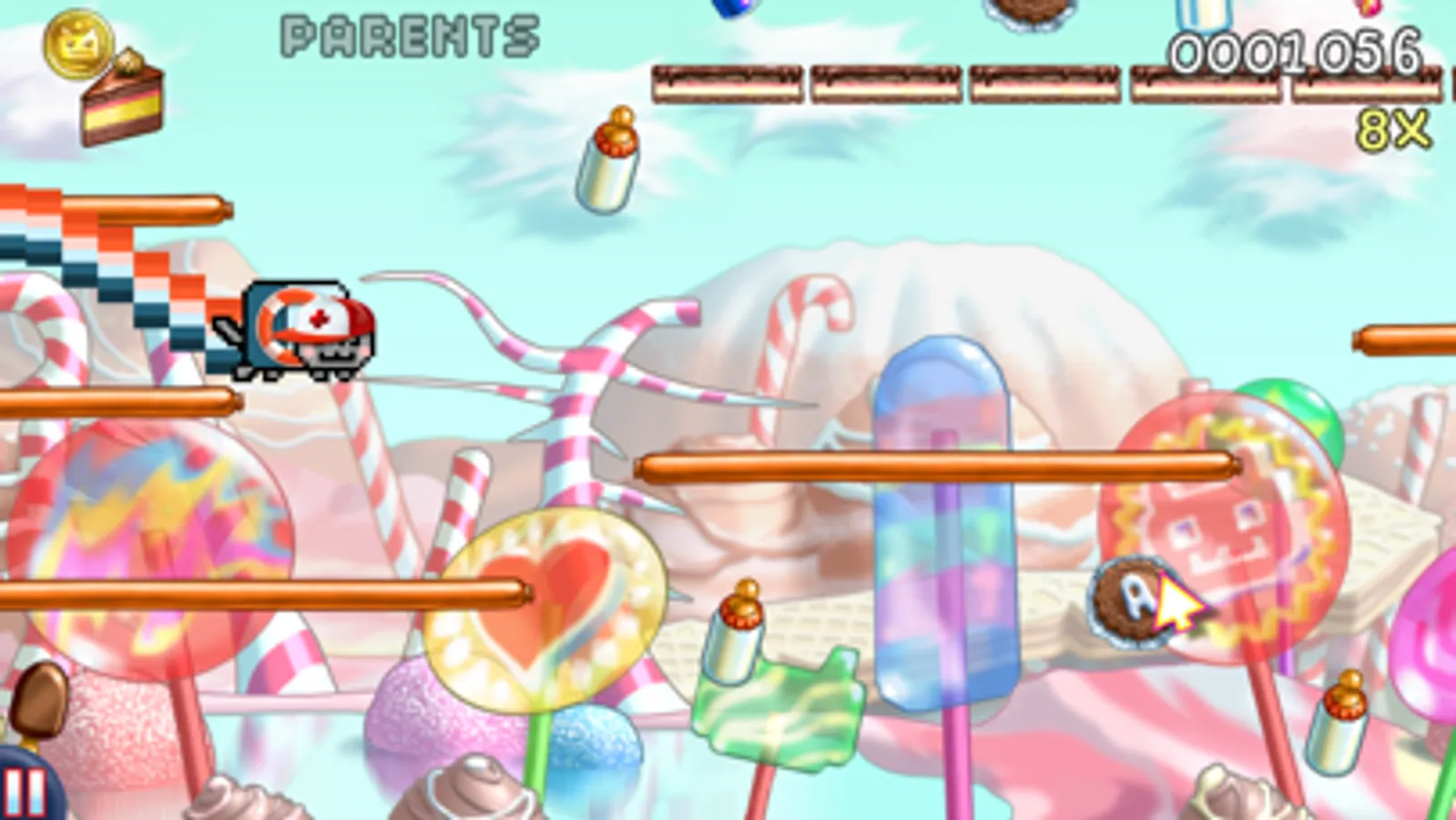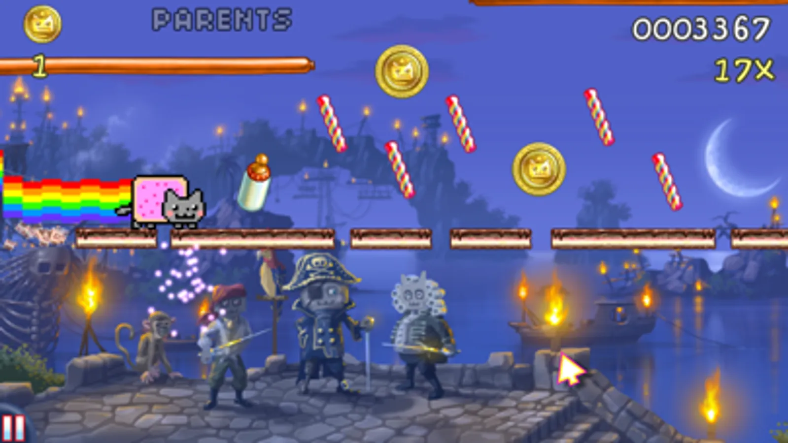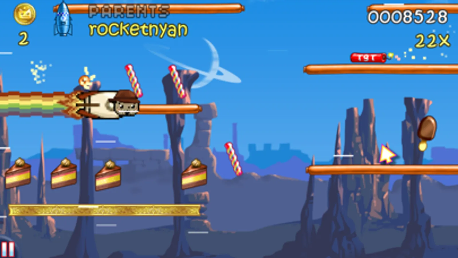nyan nyan nyan nyan POWERUPS nyan nyan nyan ACHIEVEMENTS nyan nyan SUPERNYAN nyan ONLINE HIGH SCORES nyan nyan RETINA DISPLAY nyan nyan nyan UNIVERSAL APP nyan BEAUTIFUL PIXEL ART nyan nyan nyan