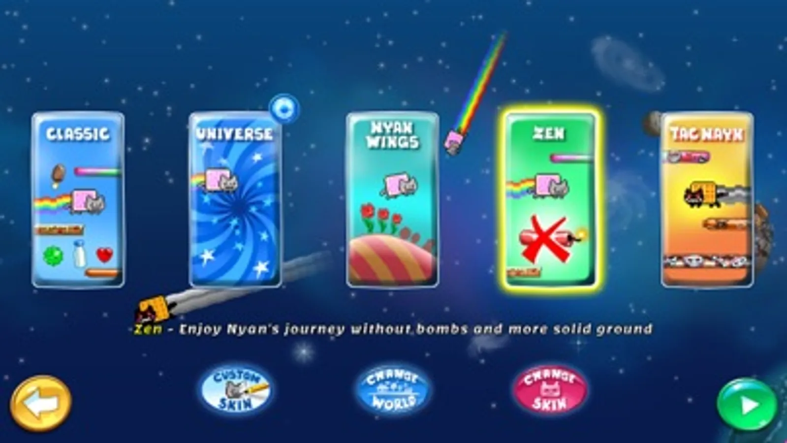 Play with the most celebrated flying cat in human history. Drink milk, eat ice-cream, collect coins, buy gorgeous boosts, fly like a superhero (sorry... supercat), jump onto platforms made of cake, avoid angry dogs, and discover the infinite space. And that's not all, you can choose from multiple game modes, where you can play with Nyan Cat's evil foe Tac Nayn, learn to fly on different planets with Nyan Wings or visit parallel universes. If you're tired, you can even train and feed your own Nyanagotchi. Oh, and last but not least: you can enjoy the wonderful Nyan-song as many times as you want! All this funky stuff can't be missed. Or... Wait! Did I mentioned that we pay for you to play?