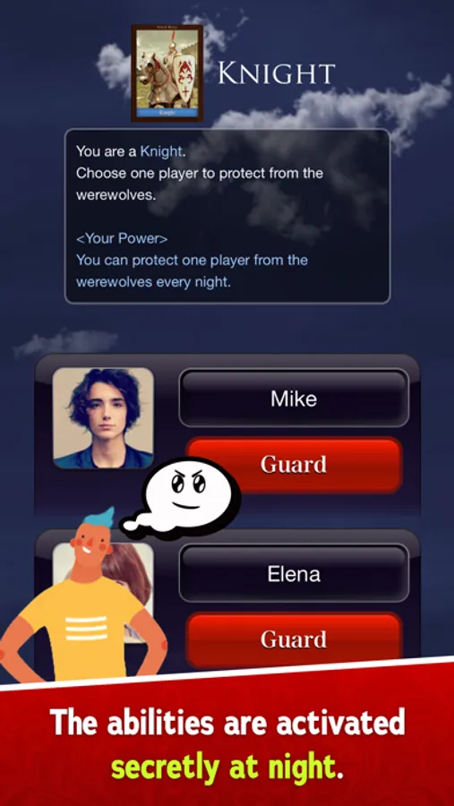 The fortune teller can see through the identity of one player who you suspect to be a werewolf every night.