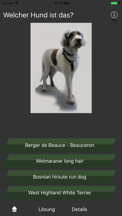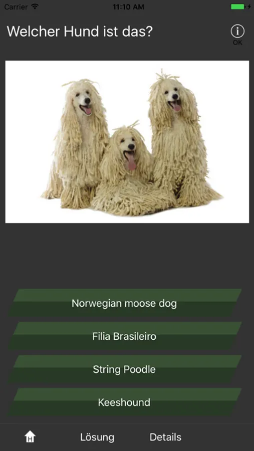 Erraten Sie die Hunderasse. Es sind 421 Hunde enthalten. 4 Antworten, eine Antwort ist richtig. Detailansicht des Hundes mit allen Daten:
