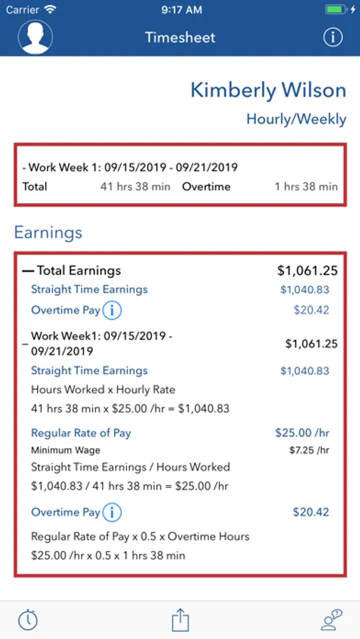 This app provides a timesheet for employees and employers to record work time and calculate pay. It also performs overtime pay calculations at a rate of one and one-half times (1.5) the regular rate of pay for all hours you work over 40 in a workweek.