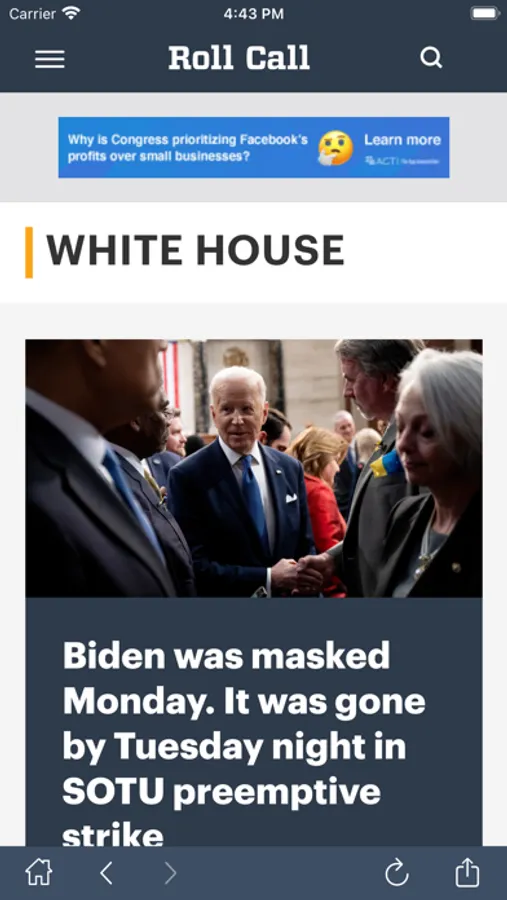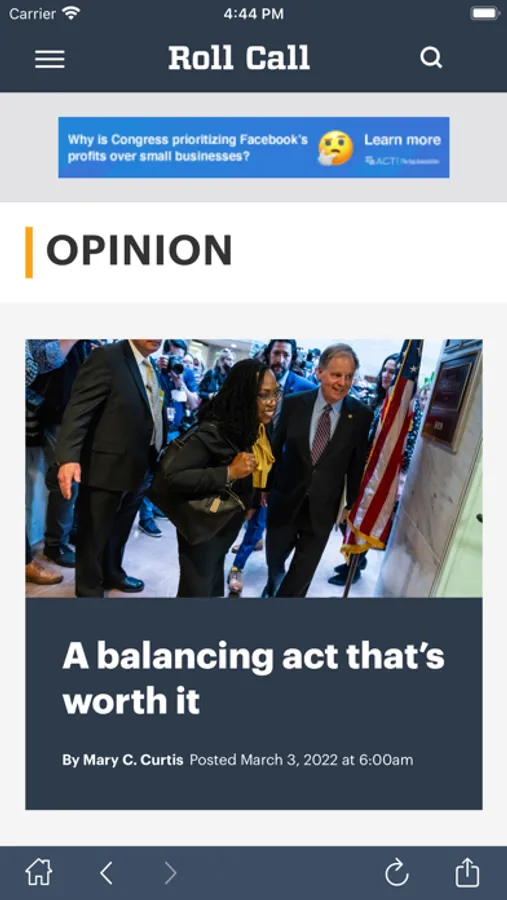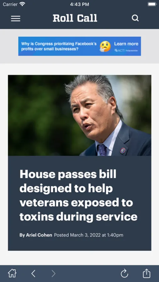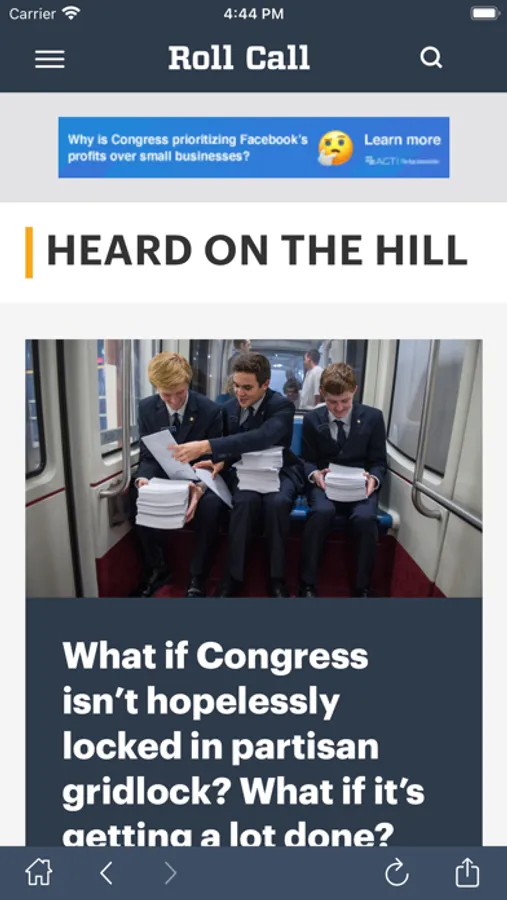 - Customization: choose your personal topics; search and bookmark the stories you like; get Roll Call news to your inbox.