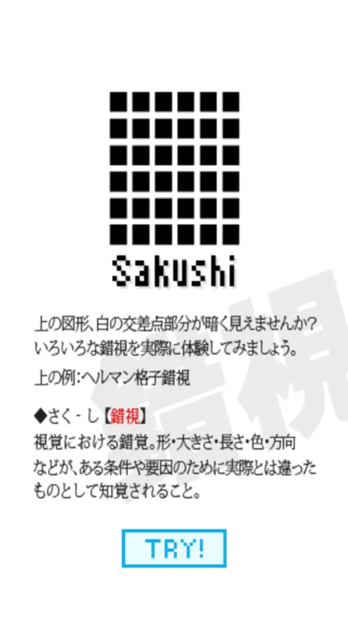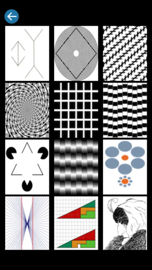 このアプリはその錯視を楽しめる、15種類の錯視画像を閲覧できるアプリです。