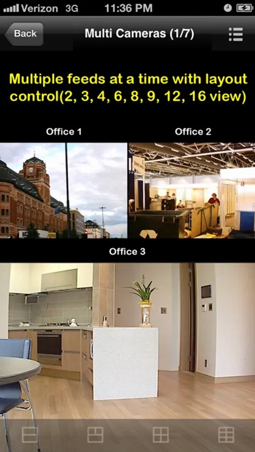 ▶ Easily view multiple feeds simultaneously on a screen with layout controls (2, 3, 4, 6, 8, 9, 12, 16 views)