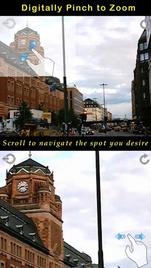 ▶ Pinch to digitally zoom for any part of the display screen that the user desires