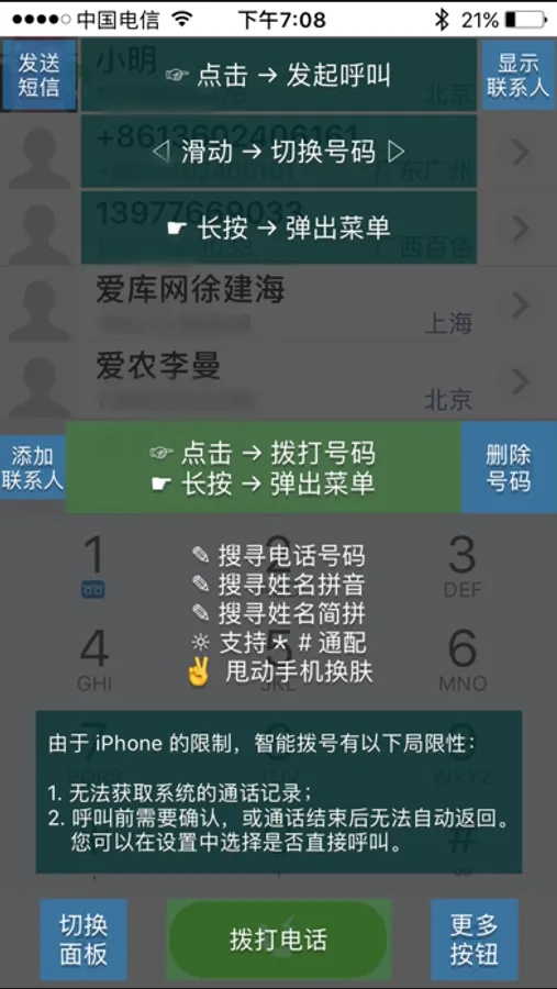 CeleDial is a must-have smart dialing assistant for iPhone, it helps you locate contacts in a simple, convenient and quick way.