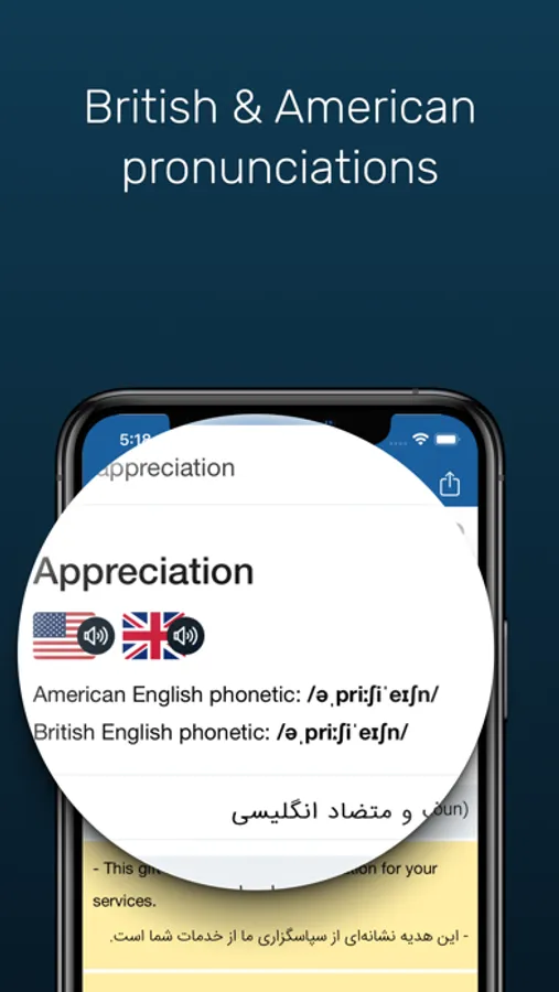 - Online and offline English audio pronunciations with both American & British accents (For words and sentences)