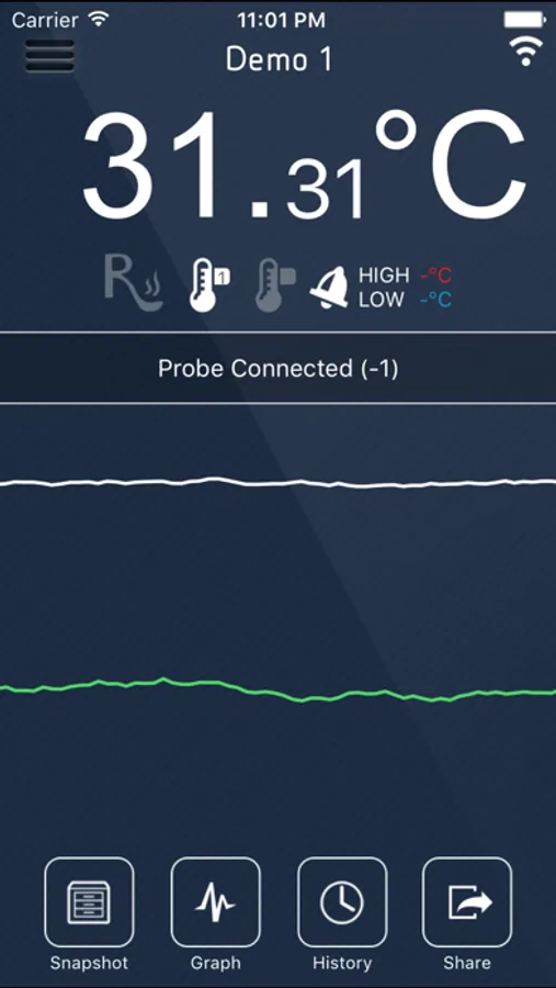 • Snapshot Record – Ability to record a single reading, along with title, picture and note.