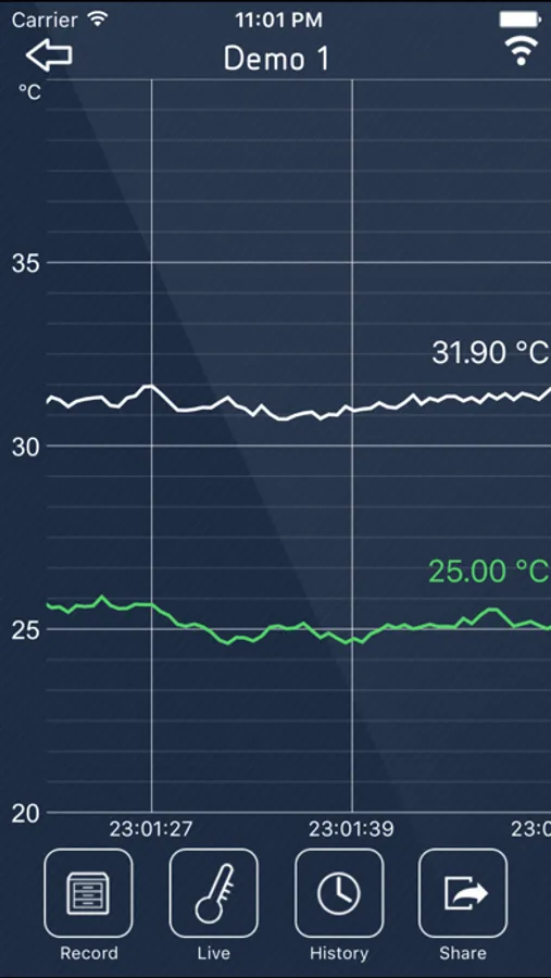 • Continuous Record – Ability to continuously record readings as well as to add notes, take a picture and drop a pin on the graph.
