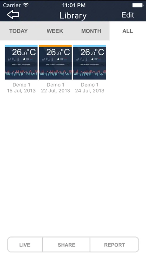 The current app downloaded from the App store will read temperature, create graphs and set up alerts.