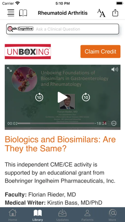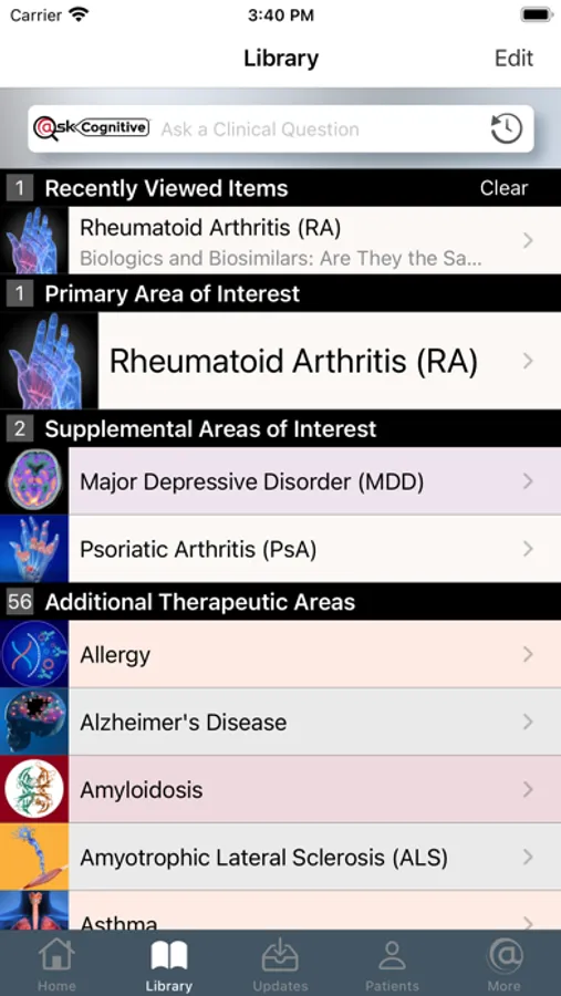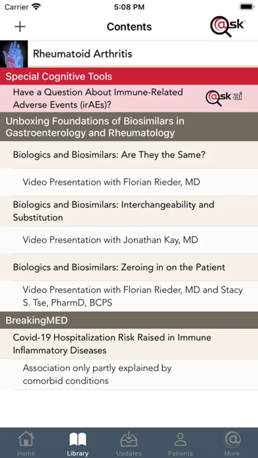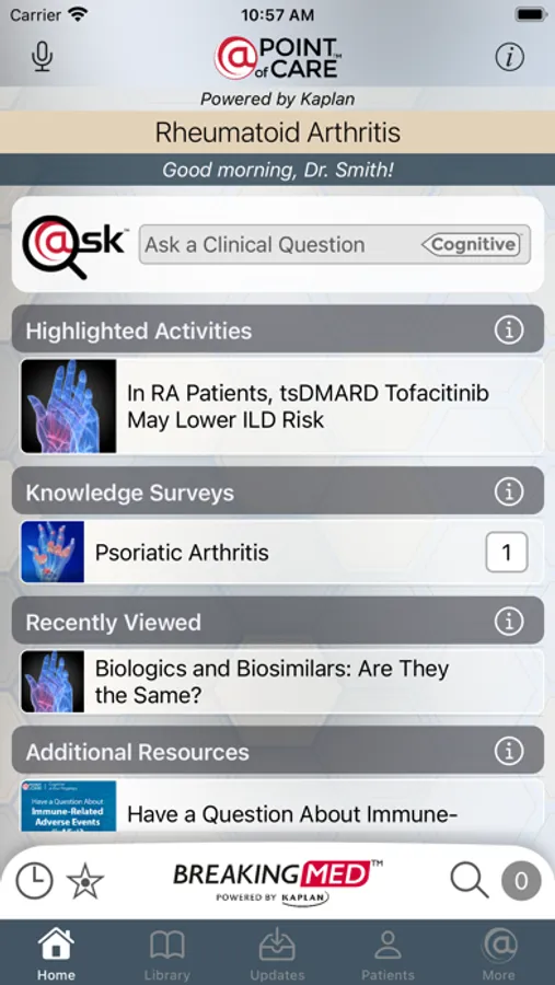 @Point of Care™ With Cognitive AI is a clinical decision-making mobile platform. Rheumatologic Diseases @Point of Care™ provides a streamlined clinical decision support tool for clinicians to obtain content when it is needed—enabling better decisions, better outcomes, and better care.