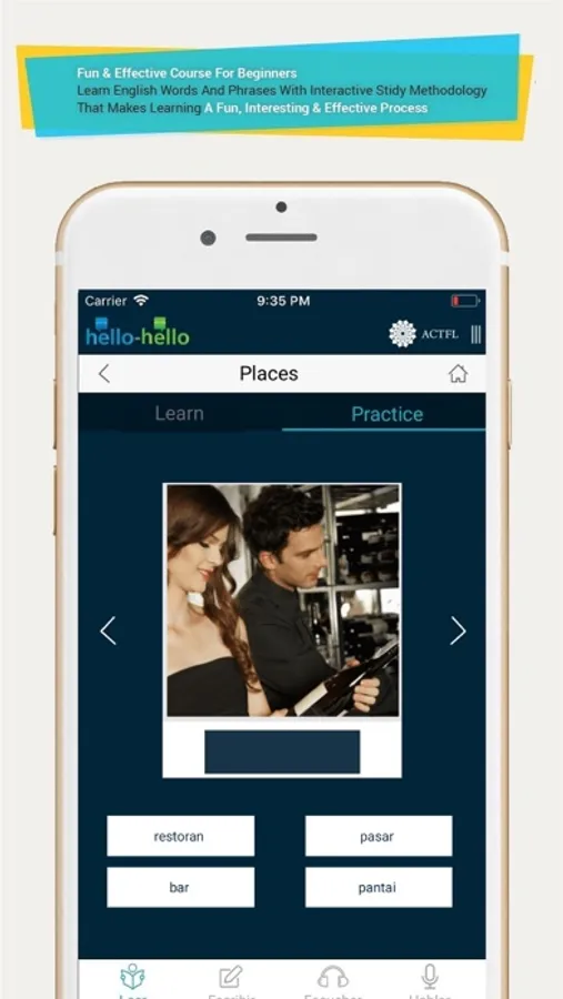 Hello-Hello also has a Conversational Course App that is a robust language course with 30 conversational lessons. The courses were developed in collaboration with The American Council on the Teaching of Foreign Languages (ACTFL), which is the largest association of teachers and administrators of all languages at all levels, serving more than 12,000 educators.