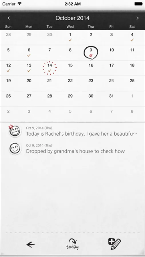 - Special days can be starred. It can be seen separately on search page. Also sorting by happiness, mostly viewed and stickers can be done to take out memories easily.