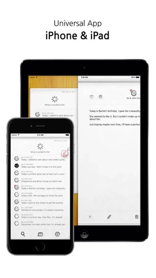 * My Wonderful Days is a diary you can easily write on. Full of analog features, 2-in-1 iPhone+iPad universal app fully supporting iCloud, searching, photos and a lot more. Get it now and start your wonderful days.