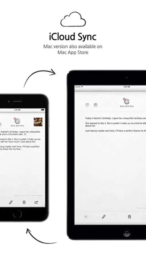 - Supports both iPhone and iPad by universal app. Automatically syncs data through iCloud.
