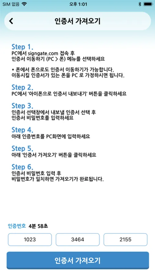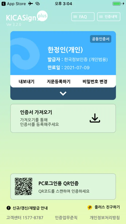 - KICASignPlus 앱에 대한 궁금하신 점은 고객센터(1577-8787)로 문의해주시기 바랍니다.