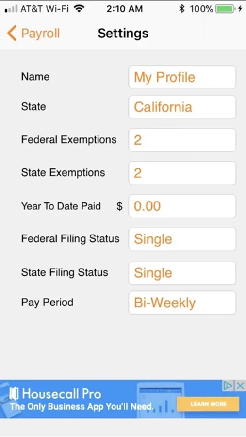 Paycheck Lite mobile payroll app considers federal and state deduction allowances, current year to date wages paid, and federal and state filing statuses - details that affect accuracy of calculation. For professional payroll app and paycheck calculation consider upgrading to paid Payrollguru app, which allows for multiple employees payroll profiles, pre-tax and post-tax deductions, and displays a pie chart distribution of a gross paycheck.
