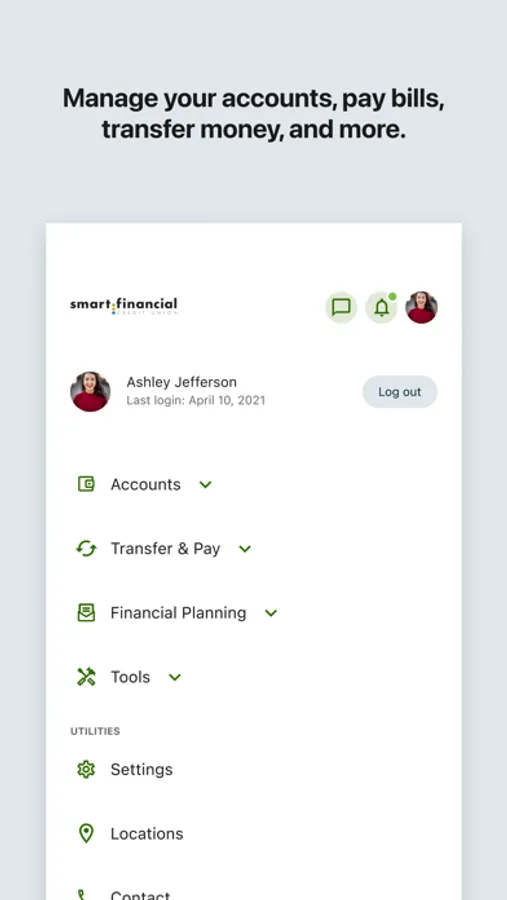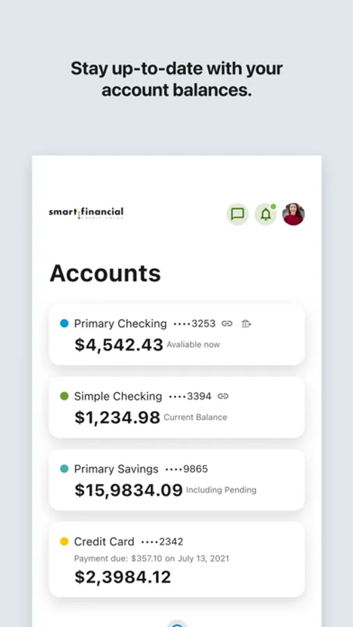 The Smart Financial Mobile App gives you the freedom to conveniently and safely:
