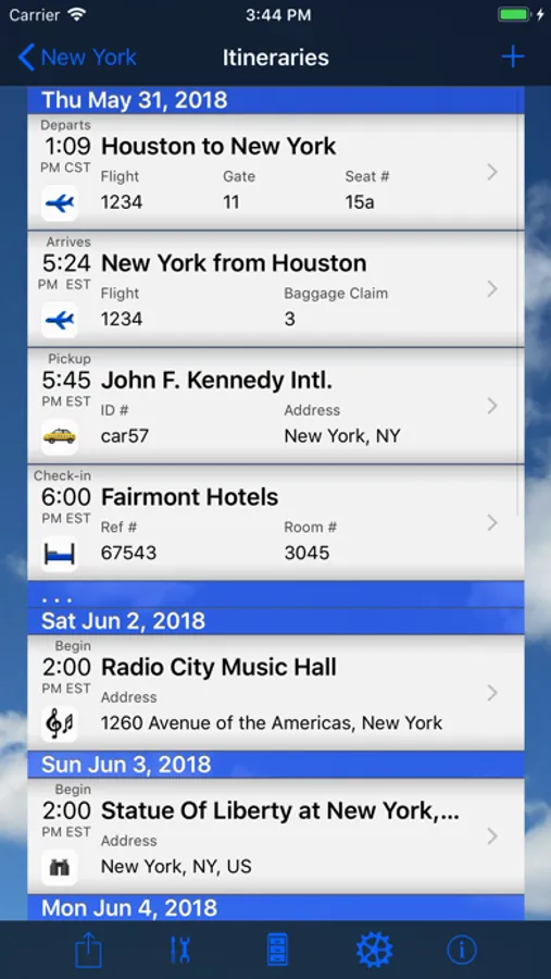 Track reservations, confirmation numbers, and appointments, eliminating a pile of printouts. Plan flights, trains, buses, and cruises. Keep dining reservations, car rental, hotel bookings, ground transportation and meeting plans.