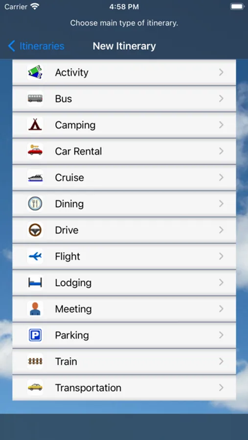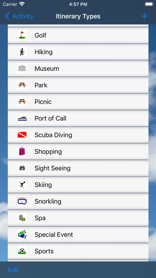 - Custom entry fields for types of itineraries, add your own unique activities.