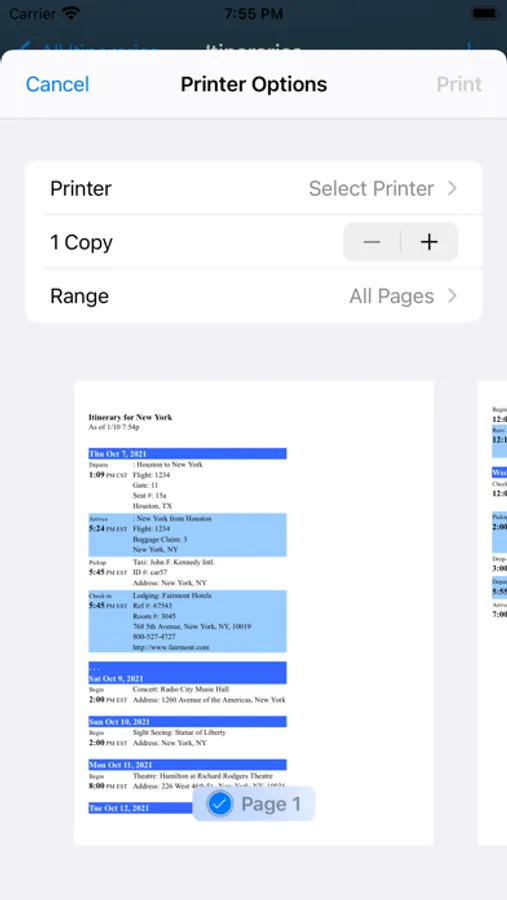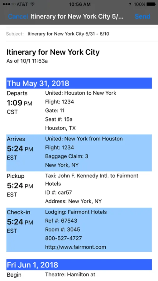 - Email a copy of your itinerary to your family, friends, or colleagues.