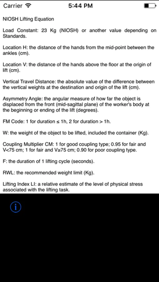 Upon entering the necessary information, this app can determine if the lifting task is safe or if changes are needed. Please be aware that the NIOSH lifting equation is designed only for two-handed manual lifting tasks and there are situations where the NIOSH lifting equation does not apply.