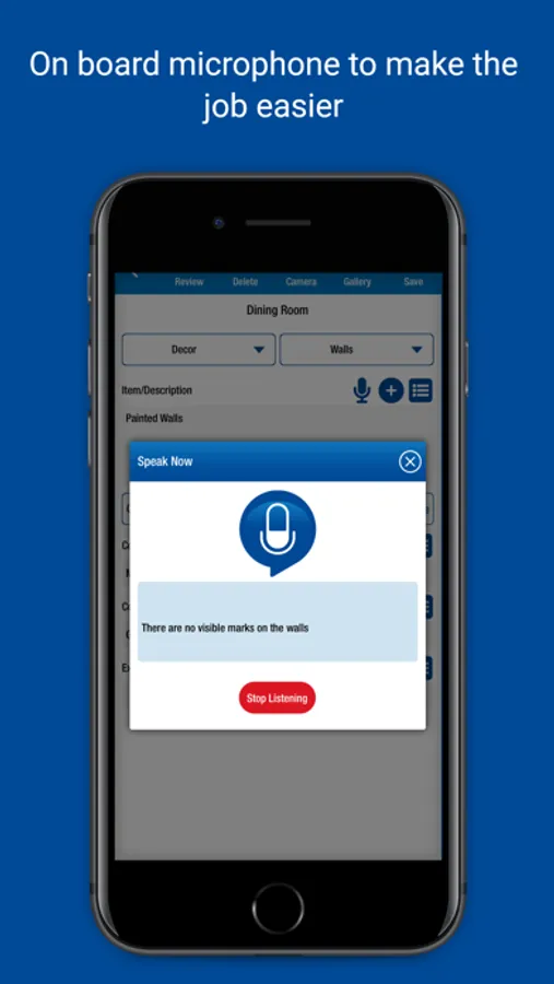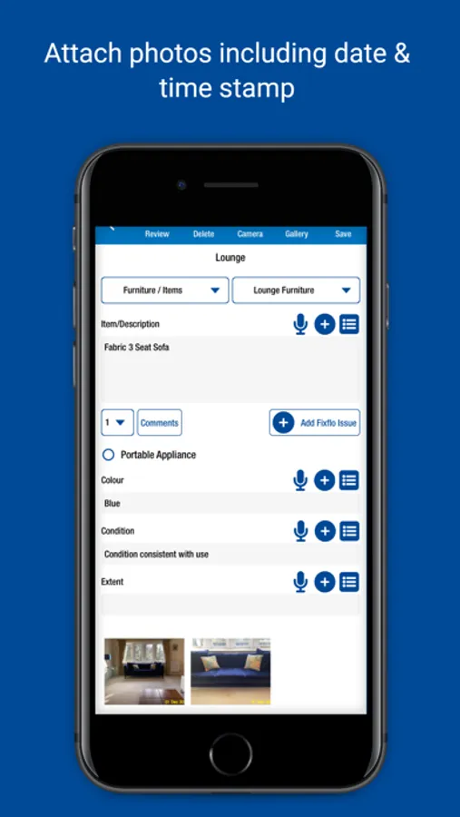 • Record items and conditions - type in answers and save for future use