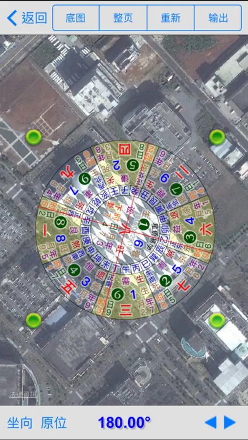 ●風水盤微調角度功能:底圖為固定不動,風水盤則可任意調整角度來「對應」底圖方位,提供多種微調功能: