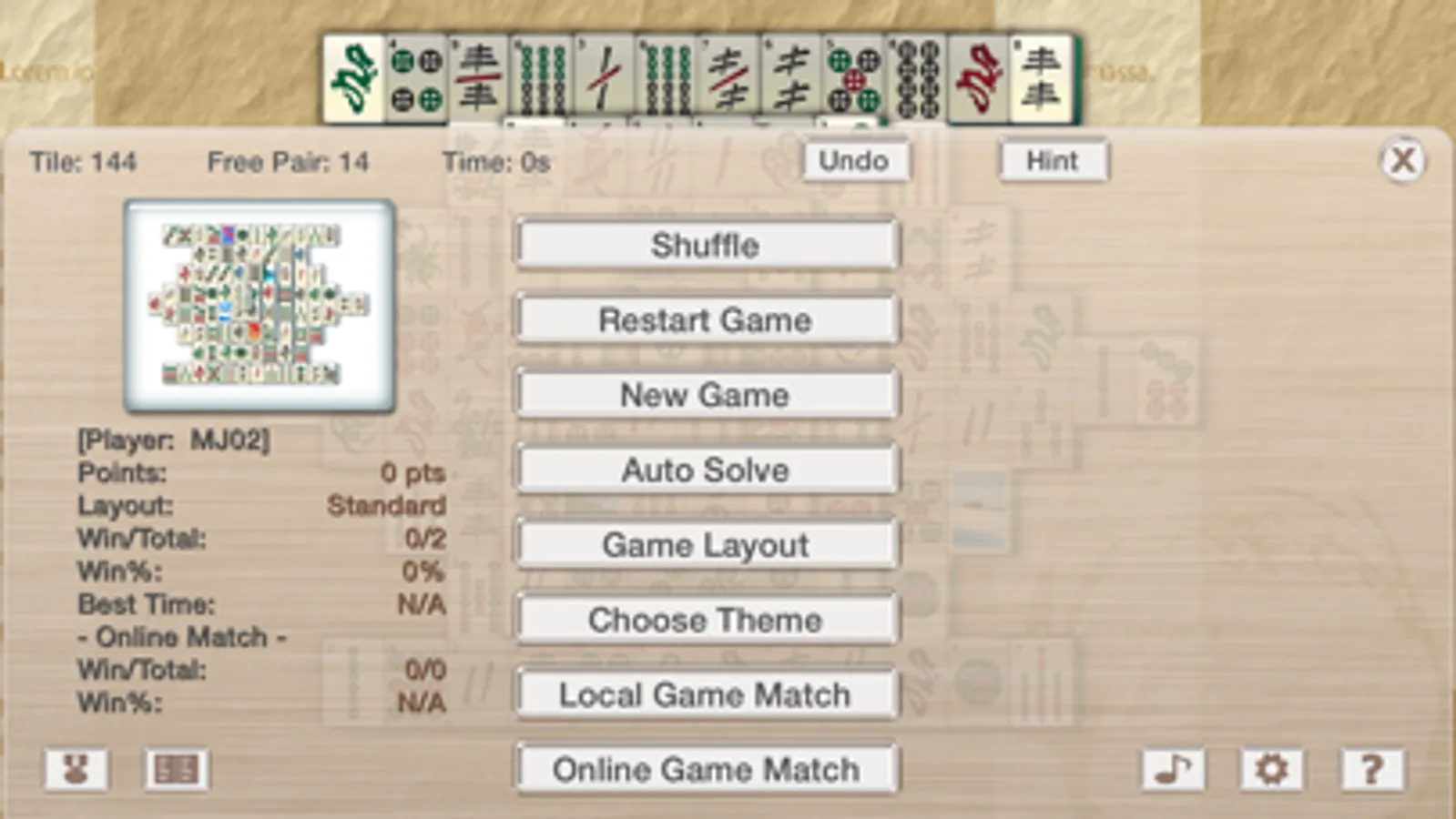 Mahjong Unlimited also provides comprehensive game stats for serious players. Game stats will be consistently uploaded to Game Center. You can judge your skill level by comparing your numbers to other players' game stats in Game Center.