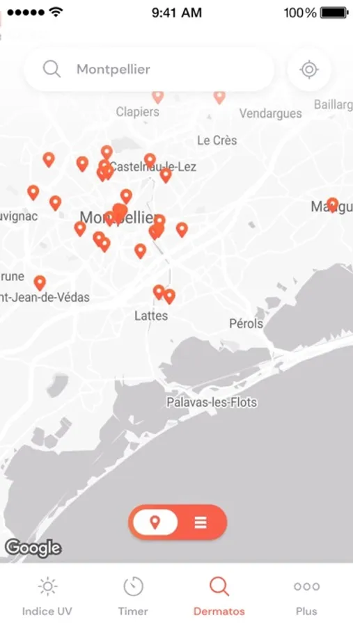 Développée par le Syndicat National des Dermatologues en partenariat avec Météo France, Soleilrisk permet d'obtenir les indices UV du jour sur l'ensemble du territoire, les règles de protection à mettre en œuvre quand le soleil peut être dangereux. A l'ouverture de l'application, l'utilisateur accède directement à l'indice UV de sa région (par géolocalisation) au jour J ainsi qu’à J+1 et J+2. Au total, 300 villes sont ainsi répertoriées.