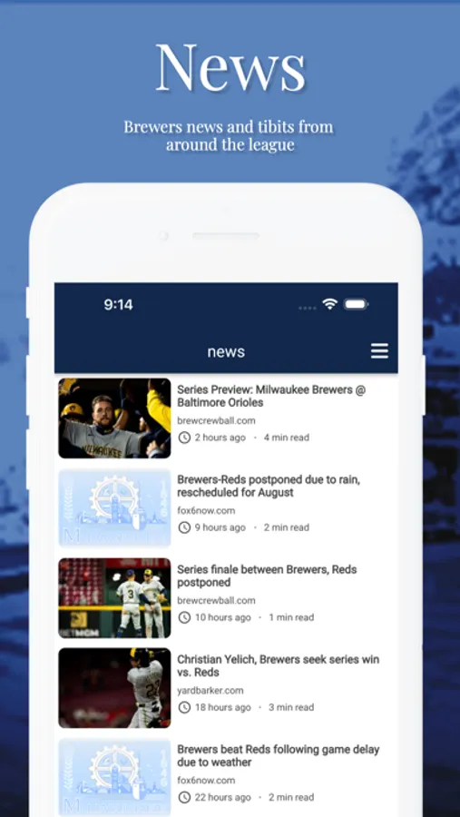 Follow Wisconsin's team with Milwaukee Baseball News, an unofficial Brewers fan app. We keep it simple with Milwaukee Brewers news and opinion, live scores, team schedule, player stats, and MLB standings. While we check in on what's happening around baseball and the minors, our app mainly focuses on the Brewers.