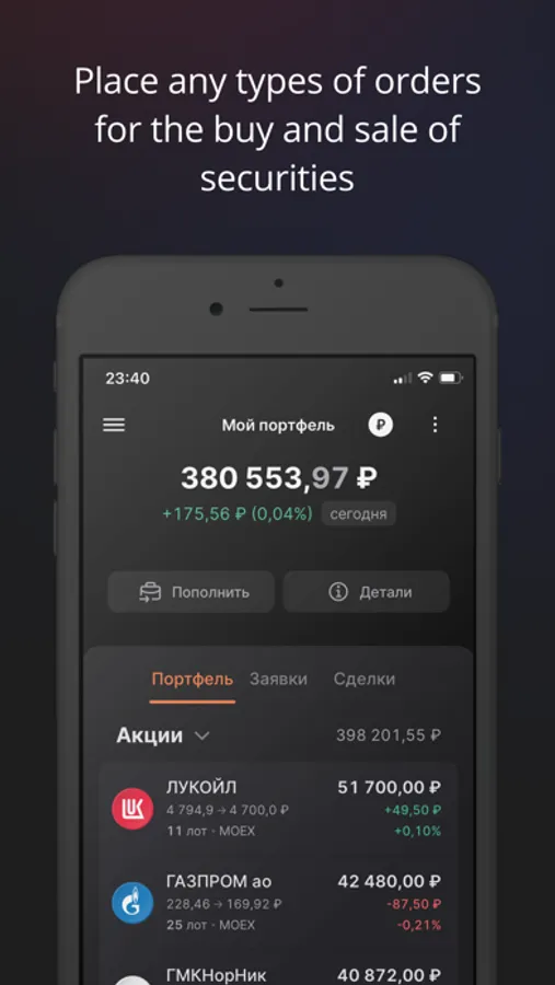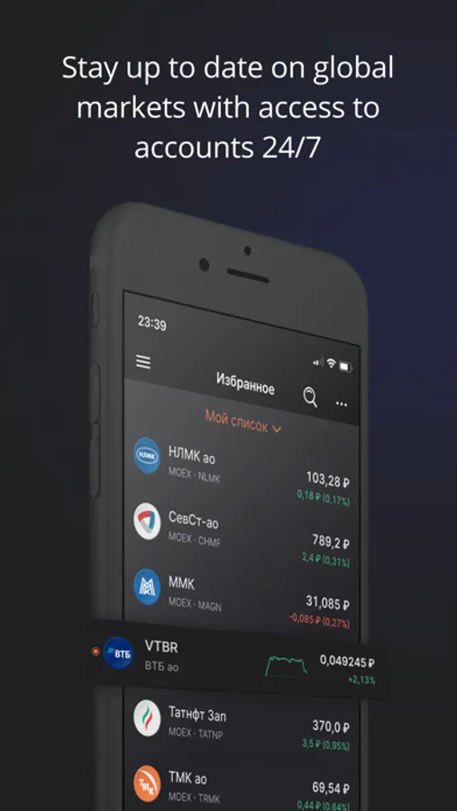 Check out real-time quotes and charts of financial instruments, trade, watch the course of trading, keep abreast of current exchange news and macroeconomic events — all in one application!