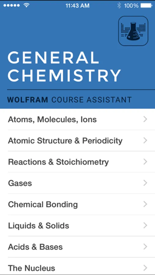 Taking introductory chemistry, or need a quick chemistry reference? Then you need the Wolfram General Chemistry Course Assistant. This comprehensive app for chemistry will help you quickly solve your homework problems, ace your tests, and quiz your understanding of basic chemistry concepts so you're prepared for your courses. Forget canned examples! The Wolfram General Chemistry Course Assistant solves your specific chemistry problems on the fly.