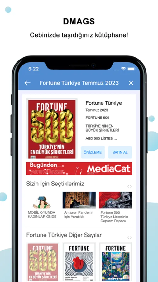 Yüzlerce dergi ve binlerce arşiv sayısı ile Türkiye’nin en tecrübeli dijital dergi ve çizgi roman platformu olan dMags ile dilediğiniz dergiyi kolayca alıp okumanın en keyifli halini yaşamaya ne dersiniz?
