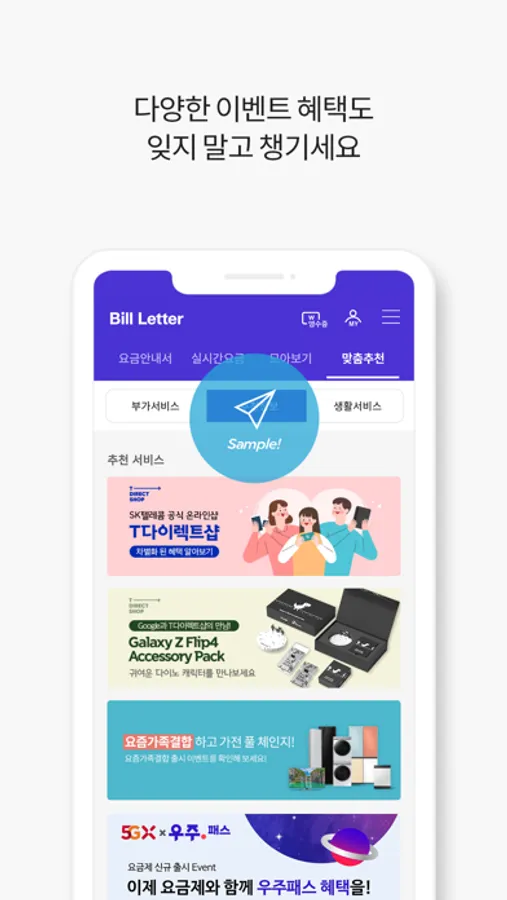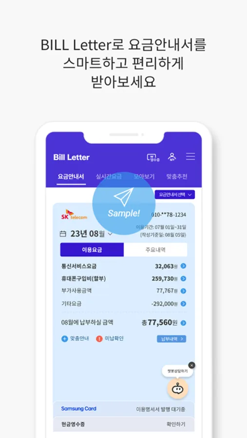내 손안의 통신금융생활 'Bill Letter'를 통해 각종 청구서를 받아보세요.