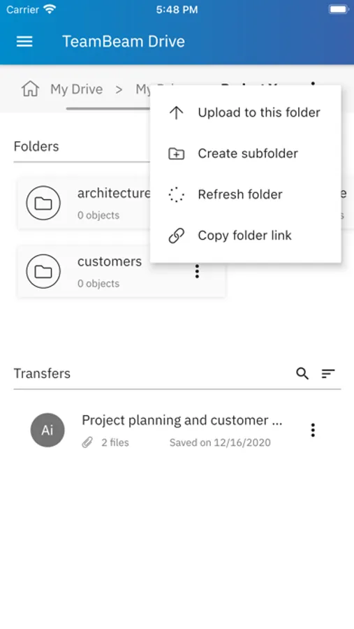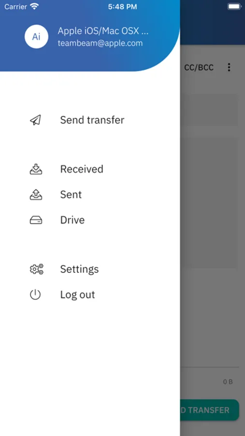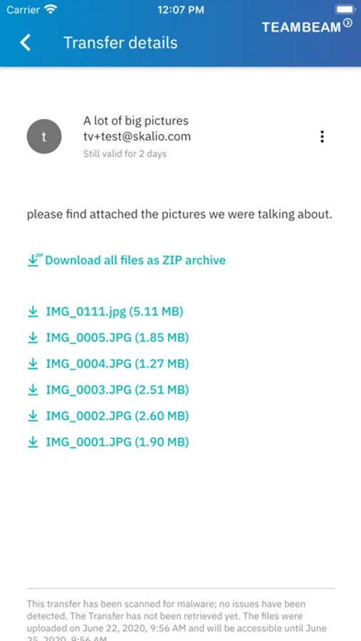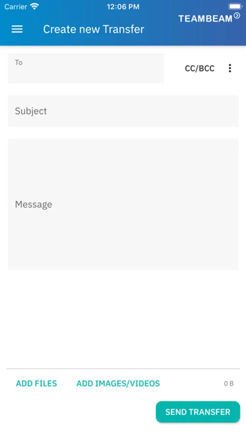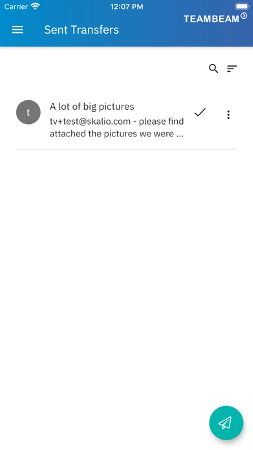 The app to access TeamBeam service. TeamBeam enables you to send large files via Internet securely.
