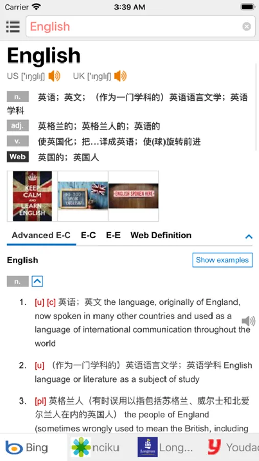 ■ 鍵入一個詞和搜索許多英語- 中文字典同時進行。