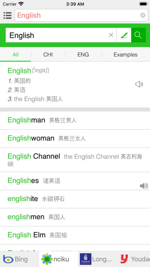 ■ 键入一个词和搜索许多英语- 中文字典同时进行。