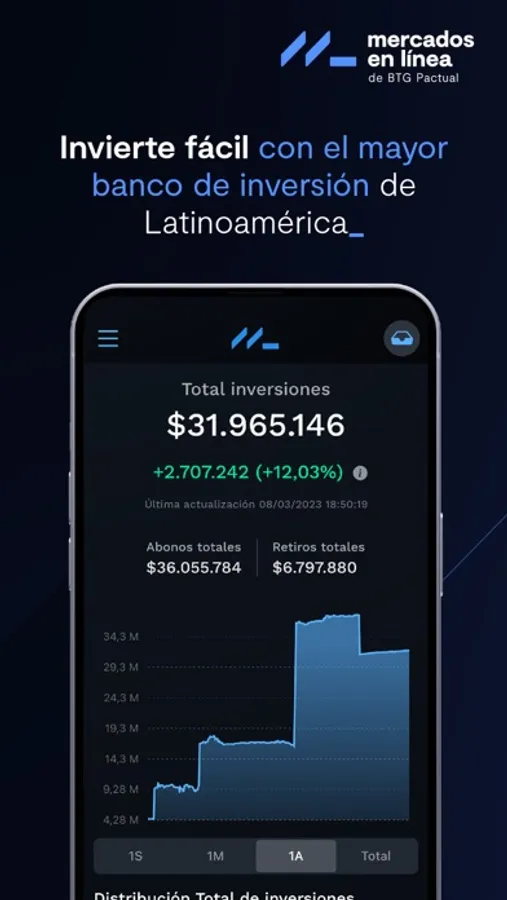 Con Mercados en Línea de BTG Pactual, invertir nunca fue tan fácil. Crea tu cuenta en pocos pasos y ya podrás invertir en lo que quieras, en una experiencia simple, intuitiva e informada, con bajas comisiones y desde $5.000.