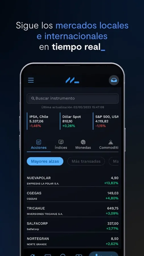 INFORMACIÓN QUE TE SIRVE. Ponemos a tu disposición todo nuestro conocimiento de economía, finanzas y los mercados para que inviertas informado, afines tus estrategias, o aprendas lo básico - y no tan básico - de las inversiones. Encontrarás reportes de Research preparados por el mejor equipo de Latinoamérica, artículos de educación financiera y las últimas noticias relevantes. Todo en la misma app.
