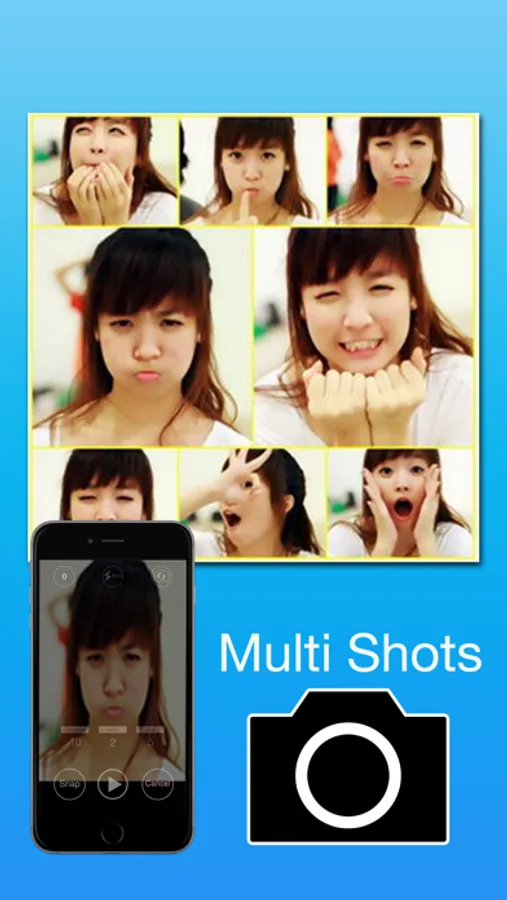 This app allows you to take photo yourself or share with friends and groups more easily.You can set a countdown before taking pictures at a time. Including the number of shots in a continuous take.You can set up by the operation mode 2.