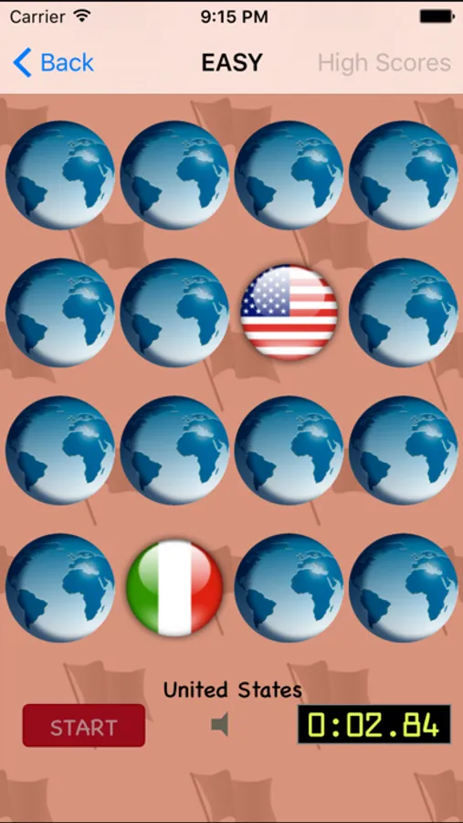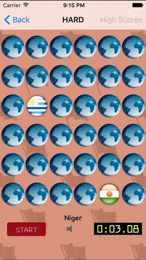 Tap to flip world globes, find those with the same flag to make them disappear.