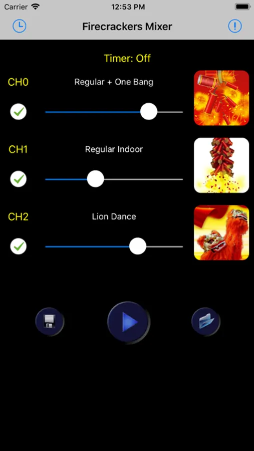 This app is a very powerful and customizable firecrackers tool. It consists of three independent soundtracks which including 12 basic sound of firecrackers and traditional instruments, can generate over one thousand of firecrackers sound combinations, the sound is clear and vivid, if connecting to stereos speakers , you can experience the shock of the field effect. It is a very useful helper for any entertainment scenarios such as festival,holiday, celebration, birthday etc.