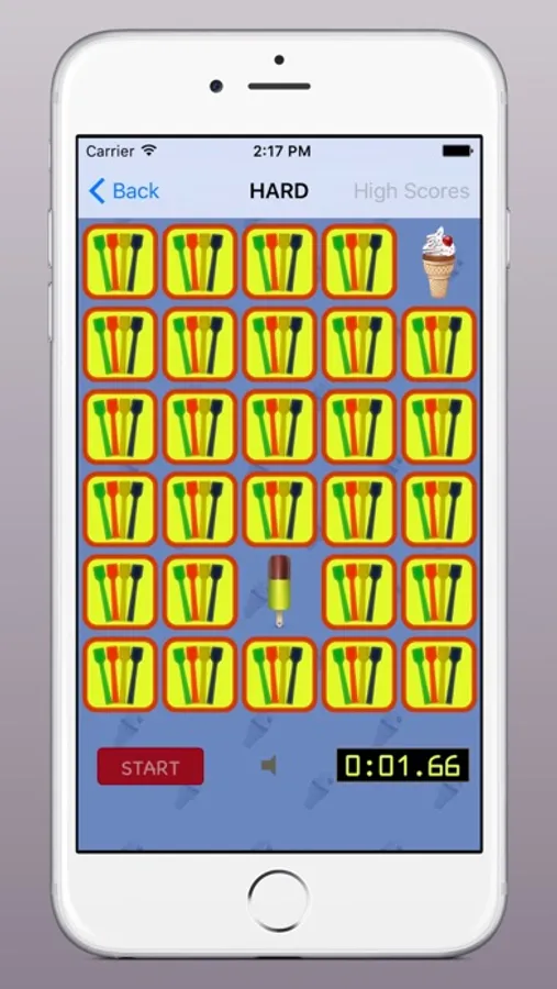 Tap to flip card, find those with the same ice cream to make them disappear. But hurry up, because time is ticking.