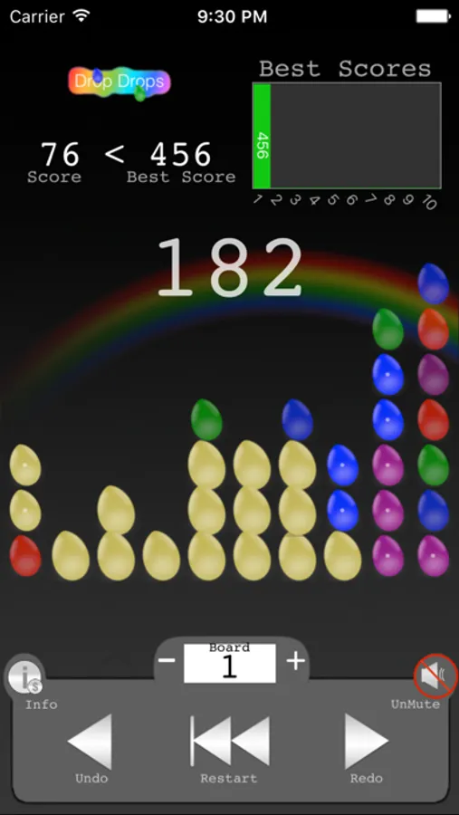 Drop Drops is an exciting new take on an old game. Remove groups of like colored drops, get more points for bigger groups. More drops rain down as the game progresses. When there are no more groups, the game is over.