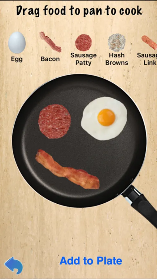 - Eggs, bacon, different kinds of sausage, hash browns, ham and more, all you can fry up in a pan, flipping the food to cook it faster.